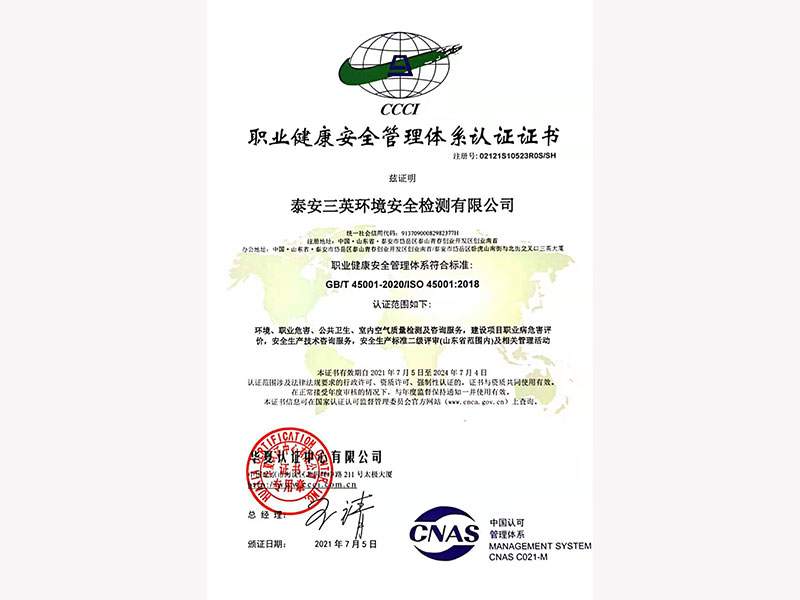 職業(yè)健康安全管理體系認(rèn)證證書